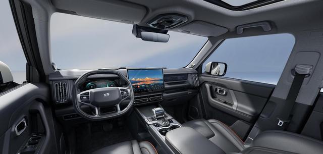 智能配置方面,捷途山海T1同样不甘示弱。尽管它是一款传统厂商的产物,但背后却依托着大厂奇瑞的雄厚实力。在座舱内,2025款捷途山海T1展现了高端智能SUV的简洁风格与硬派越野车的立体机械感的完美结合。嵌入式数字仪表盘与15.6英寸触控屏占据了中控台的主导地位;而多扶手、横纵出风口以及大尺寸电子挡把与越野模式旋钮的设计,则确保了多路况驾驶中的乘坐与操纵体验。